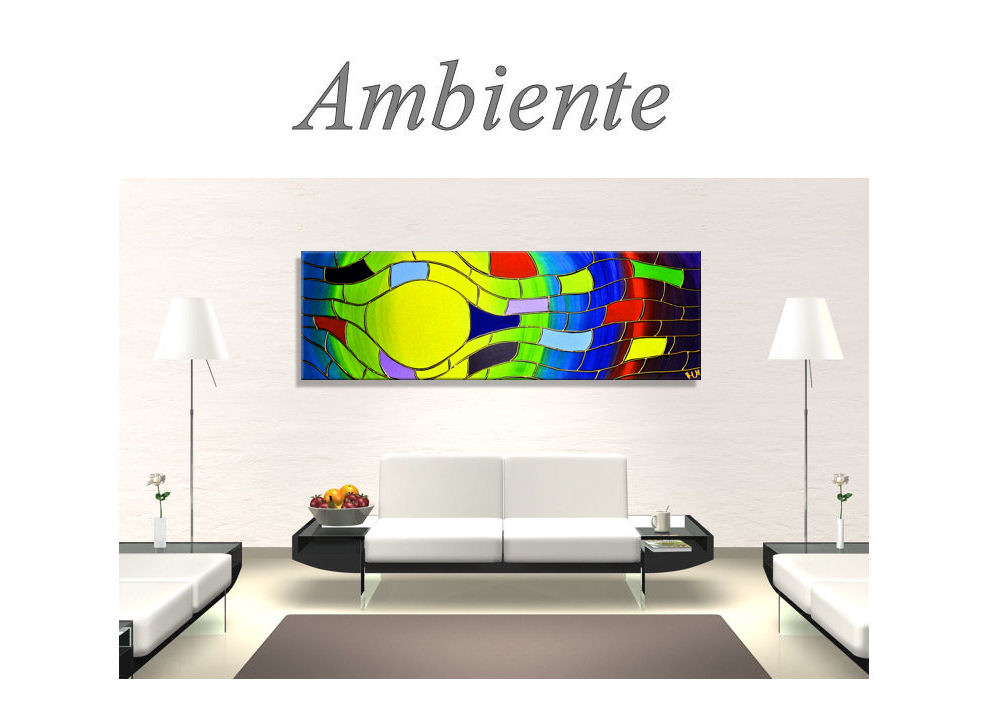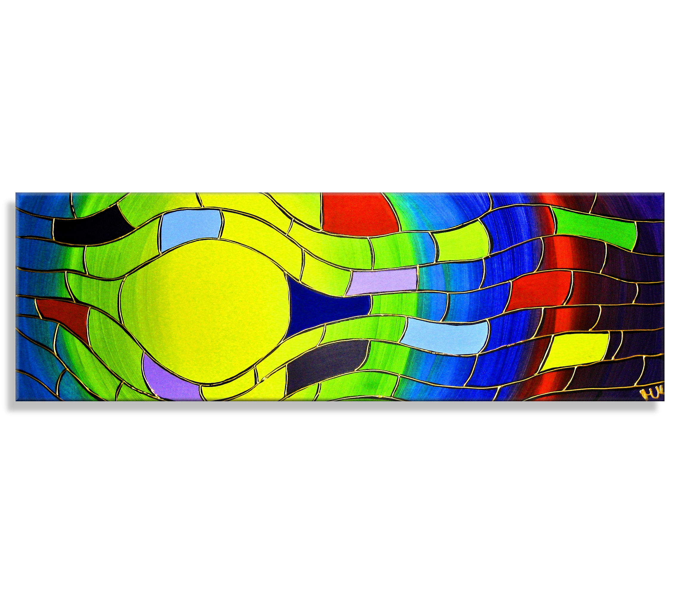 Das Gemälde „Crazy Colours II“ 120 x 40 x 1,8 cm wurde unter Verwendung professioneller, hochpigmentierter Künstleracrylfarbe in zweiwöchiger Handarbeit angefertigt. Die verwendete Farbe garantiert für eine hohe Lichtechtheit und Brillanz des Gemäldes.