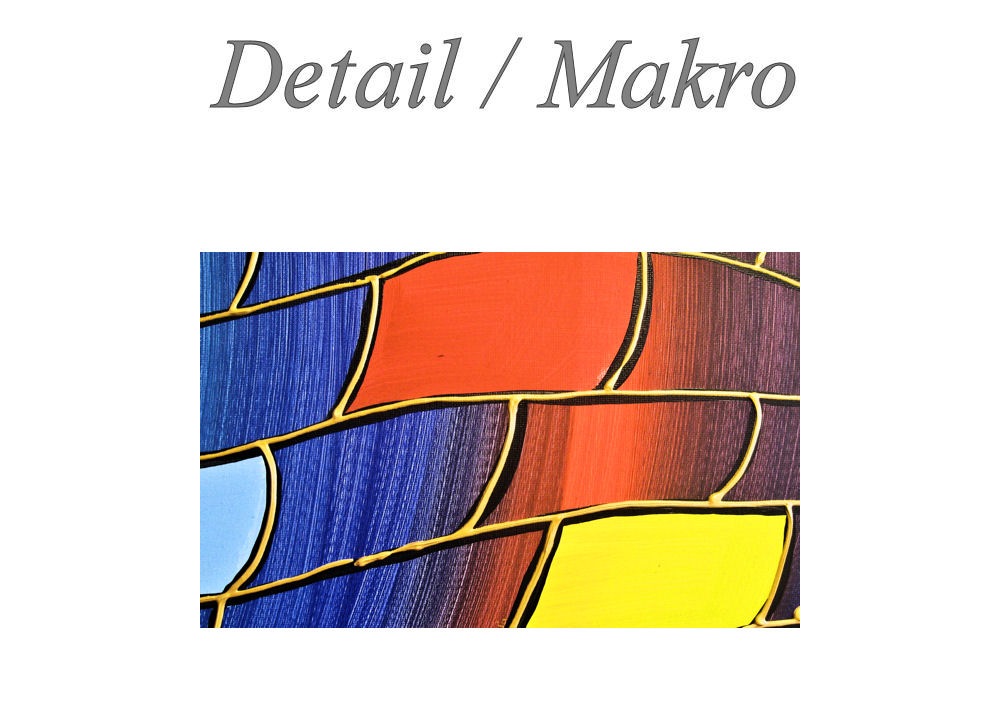 Die Farben wurden in zweiwöchiger Handarbeit in mehren Schichten pastos aufgetragen. Die Farben wurden in lasierend, ineineanderlaufend aufgetragen. Die Linien wurden kontrastreich in Schwarz gemalt und mit strukturierten Linien in Gold-Metallic versehen.